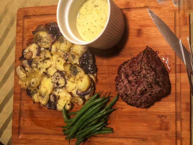 Love is in the air, and if you really want to wow your valentine, Chateaubriand is the key! A large filet mignon for two, slow roasted with tarragon, topped with Bearnaise sauce, served with skillet potatoes and haricot verts, this meal can’t be beat! By cooking the meat low and slow, it’s perfectly medium rare throughout.