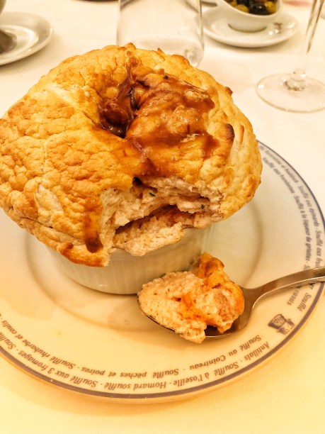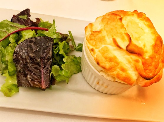 When you eat soufflé in America, it’s light but has a sort of bread-y texture. This was so light and airy, my only thought is the above three tricks to make it. I didn’t dare ask the waiter their secret – I figured a restaurant predicated on soufflé would throw me out!
