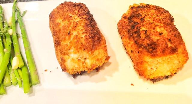 I saw this on a show earlier this week, and was inspired to re-create this childhood favorite weeknight meal. I used ground chicken which I ground myself in a food processor, but you could certainly buy ground chicken (or turkey would work). I REALLY wanted to crust it in ground corn cereal flakes for that additional level of complexity and sweetness, but I decided to save the very little bit of corn cereal flakes I have left for breakfast! When we’re not in quarantine, I’ll try that, but the panko crust was perfectly crispy and delicious on it’s own. I served it with leftover take-out rice (which we’ve made last for about 3 meals as a side) and steamed asparagus, but it would be fabulous with buttered noodles or of course mashed potatoes. Bon Appetit!