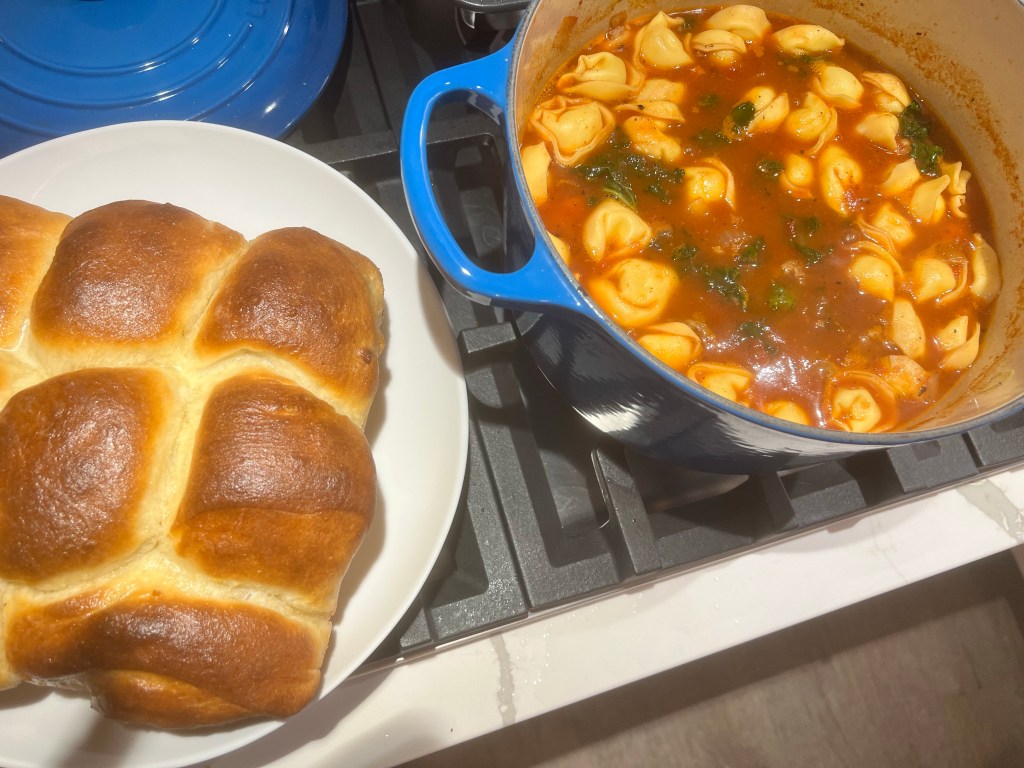 It’s our first winter in Maine, and with the temperatures dropping and the days getting shorter, the cravings for a hot bowl of homemade soup are on the rise! On Sunday’s, I like to make a hearty dinner and eat on the earlier side so we both have time to relax for the week (we call it the separation). I’m not sure what inspired me for this soup, but I must admit, it was excellent, with plenty leftover for the freezer. Hot and steamy with lots of veggies and cheezie, melty tortellini, this is one I’d definitely make again! It cooks up fast and makes the house smell amazing with the browned sausage and hearty goodness!